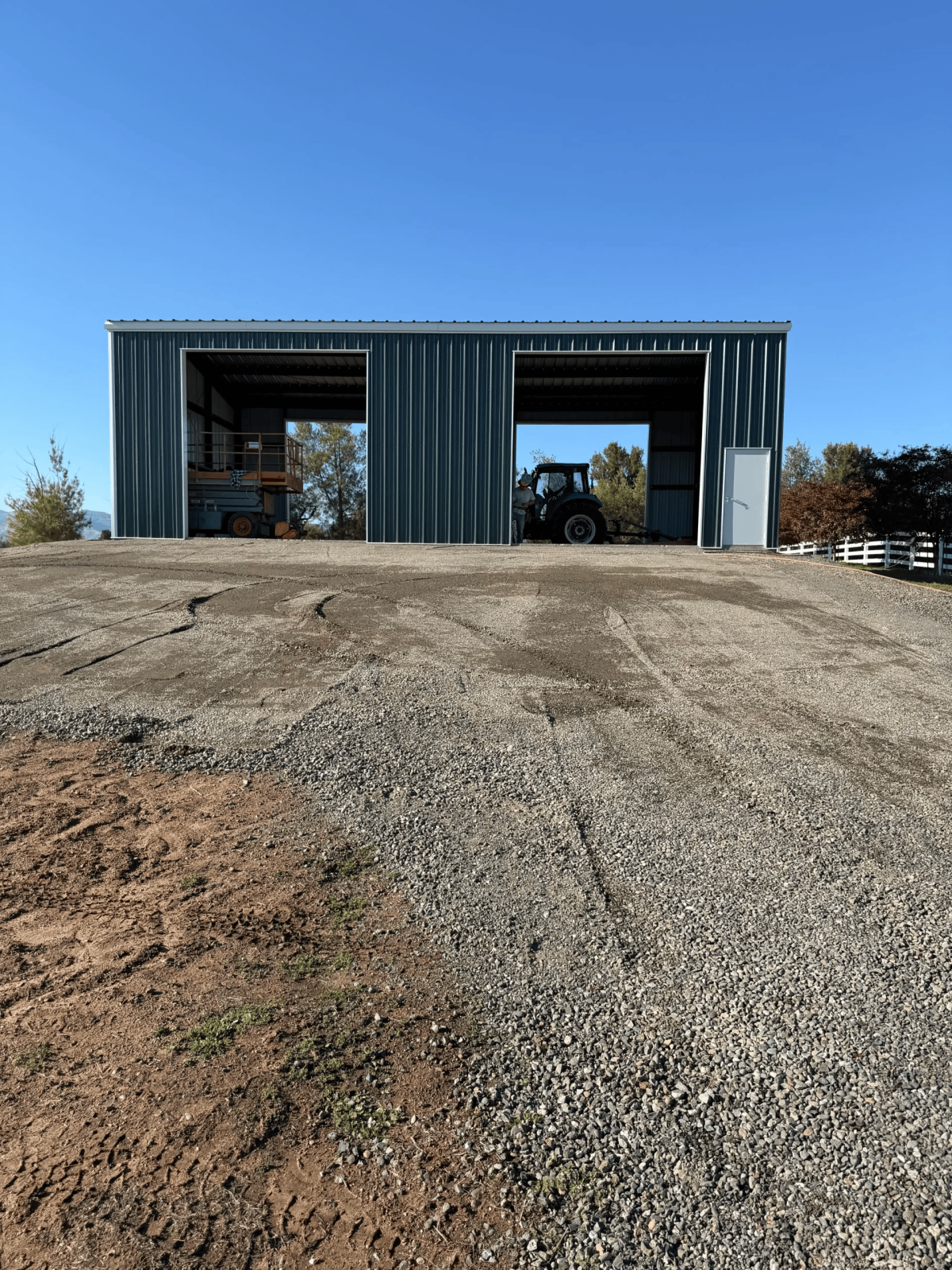 Construction began on December 2, 2022, and is ongoing, with a projected completion date of December 1, 2025. The plan includes precise grading to stabilize uneven terrain, reinforced concrete foundation installation, and careful steel frame assembly to ensure long-term durability and functionality. This project demonstrates how professional planning and metal building installation can provide secure, accessible storage for residential properties.